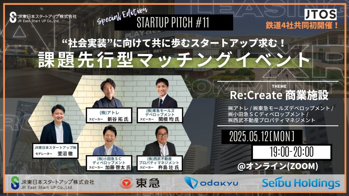 鉄道4社が新たなパートナーと協業にチャレンジします!!課題先行型マッチングイベント「STARTUP PITCH#11 with JTOS」採択企業決定!